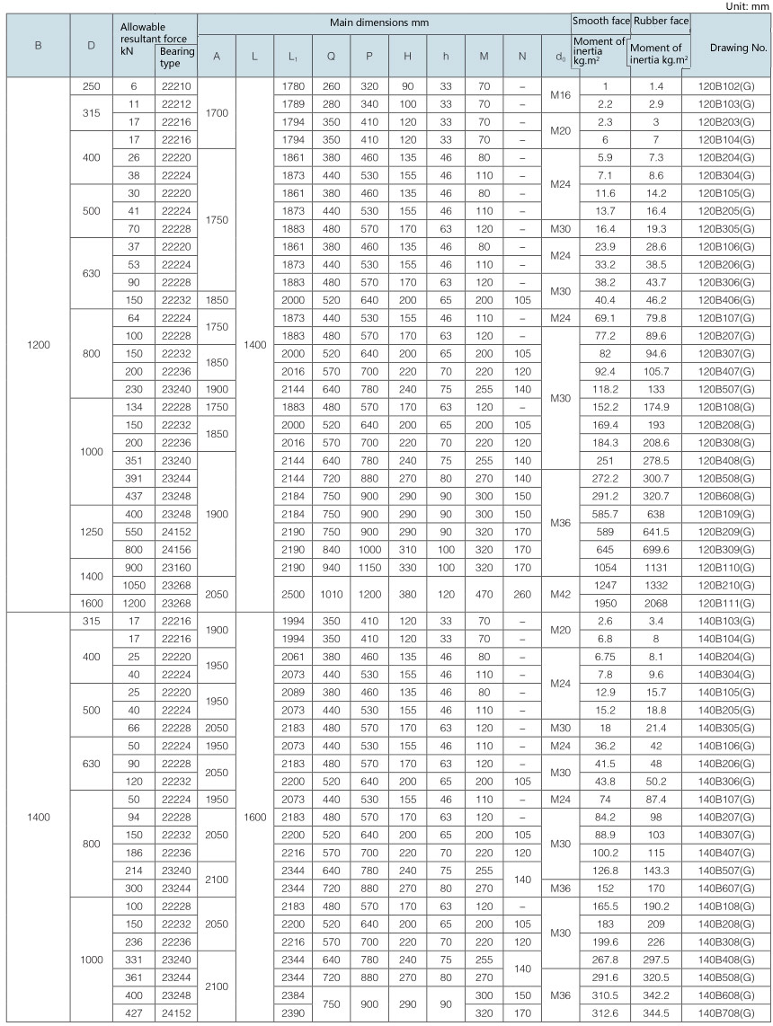 Requirement for drum surface: all are cast rubber surface. Drawing No. with “Y” as postfix refers to right-direction herringbone, with “Z” as postfix refers to left-direction herringbone, with “YZ” as postfix refers to diamond shape (omissible).