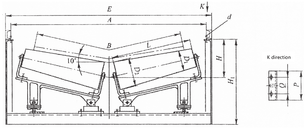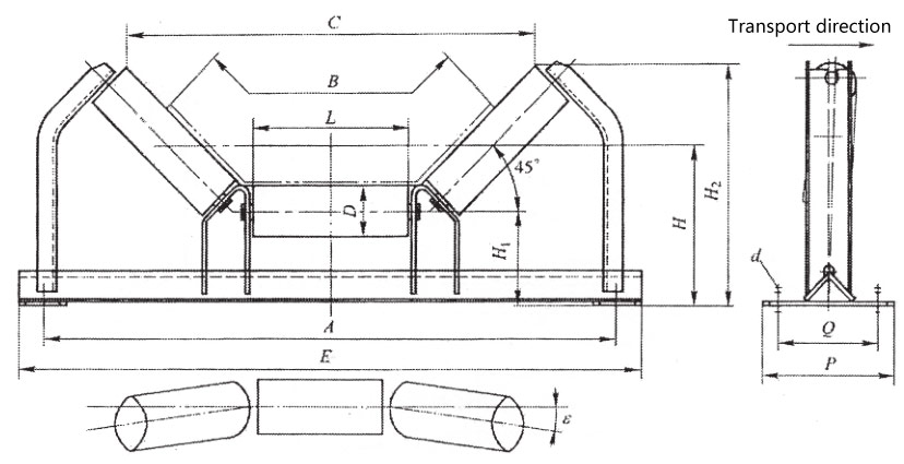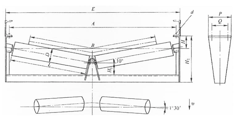 3.8 10°, ±5°transition idler with adjustable trough angle